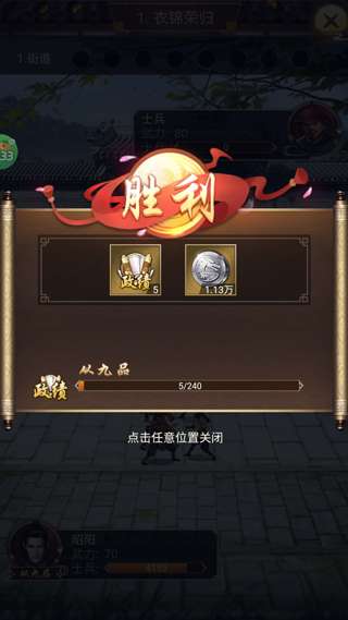 6、成功击败所有敌人即可获胜,并获得政绩和银币。