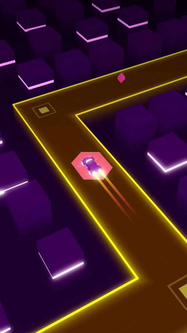 1、场景是以霓虹灯的方式显示赛道,旁边的场景则是不同颜色的方块柱子。
