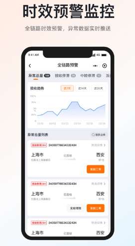 4、时效报警 提供全链路实时提醒,实时推送一键数据,清晰可见有异常数据。