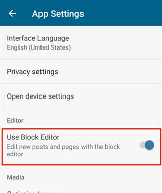 2、这将打开应用程序设置菜单,您可以在其中打开块编辑器