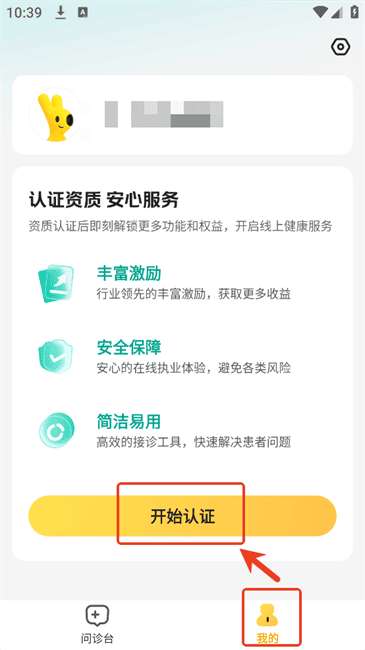 2、登录后,点击“我的”上的“开始身份验证”。