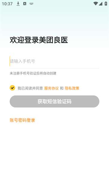 1、下载并安装美团良医,然后打开软件,使用您的电话号码登录应用程序;(PS:首次使用手机验证码登录后,系统会自动以短信的形式将账号和密码发送到注册的手机号码。您可以稍后使用账号和密码登录。)