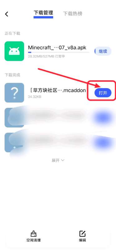 5、在下载管理中找到该资源并且选择打开。