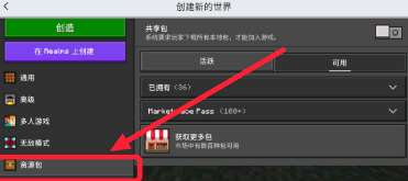 7、在创建世界往下滑找到资源包。