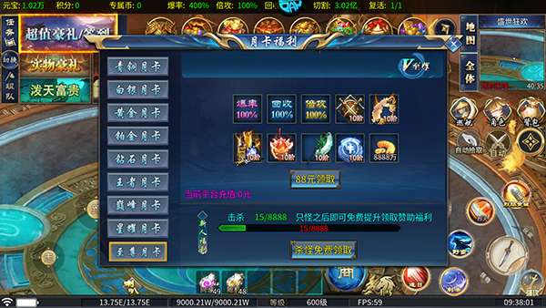 4、最后,然后月卡都可以通过刷怪来直接获取。