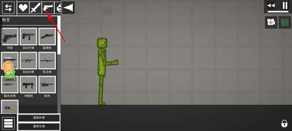 胳膊停住在空中停住之后,我们需要在左上角选择枪械图标去选择枪械;