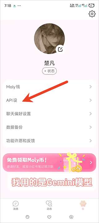 1、使用微信登录app后首先进入个人登录界面中选择【api设】点击。