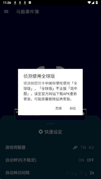 3、【选择】使用本软件前,需要选择对应的赛马少女客户端版本、日服、国服、台服等。