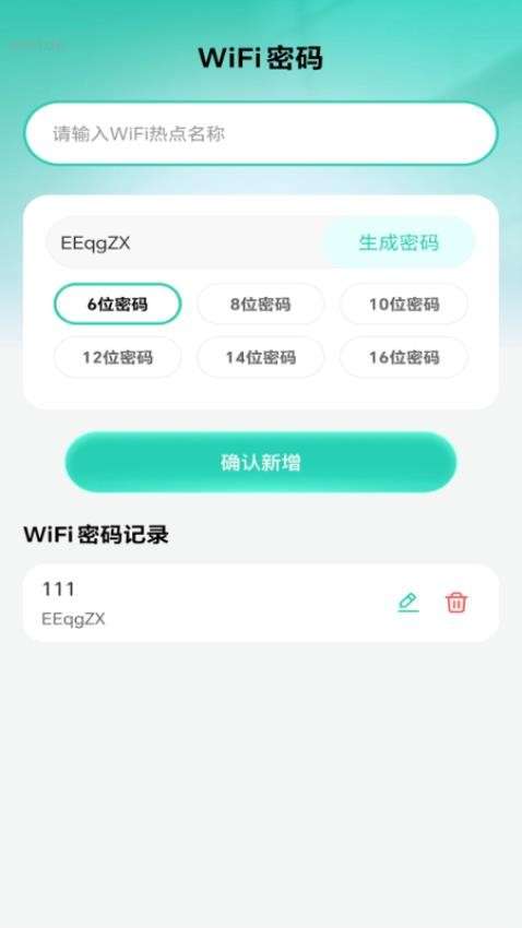 3、记录WiFi密码,保存WiFi密码信息,并能够修改和删除密码。