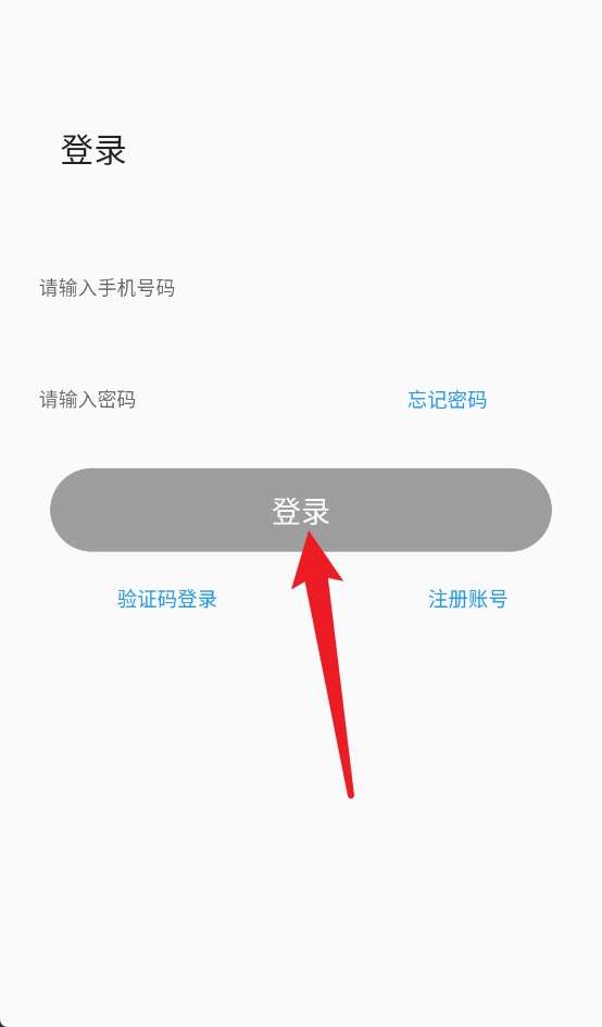 1、在登录页面输入您的手机号和密码,点击灰色登录按钮,即可完成帐号登录。