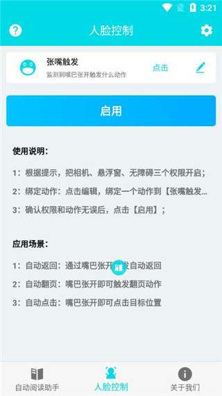 4、还可以启用面部控制功能,通过张嘴来触发特定操作,让阅读体验更自由。