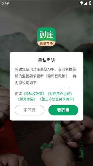 对庄翡翠app是一款非常正规可靠的翡翠玉石交易平台,大家可以放心购买交易。每一块翡翠都经过百余位专业鉴定师的亲自鉴定和多次检验。复验后送GID翡翠实验室检测。然后,在将翡翠送到您的手中之前,将为您出具国家认可的权威鉴定证书。只有在买方接受并确认收到货物后,才会将货款结算给卖方。此外,鉴定证书支持终身复验。您也可以自行到其他权威机构进行检测。如果是假的,你将得到一百万的赔偿。