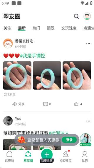 3、翠友圈是珠宝爱好者社交板块,可浏览翠友发布的和田玉、翡翠等珠宝动态,方便爱好者交流交易。