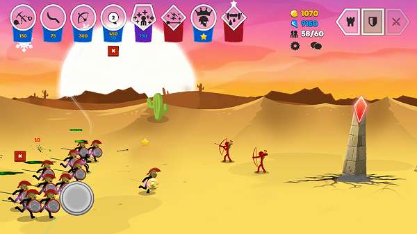 第九关:巨人关卡,先养两名剑士,操控其中一名跟巨人绕走位,另外一名备用,经济上来后全养弓箭手