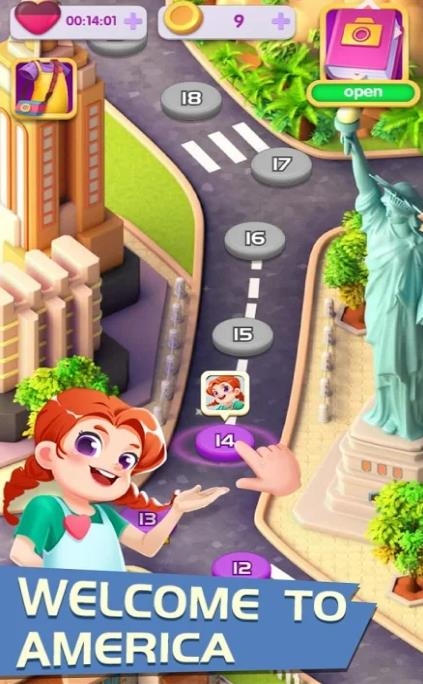 与艾米丽一起旅行在这里晚点买以下除的方式,带着艾米一起去的世界各地进行旅行游戏的关卡,也是根据地图进行设计的。有中国,埃及,美国,巴黎,等多个世界名胜景地。关卡中是以糖果元素设计的,所以玩起来比较的容易上手。