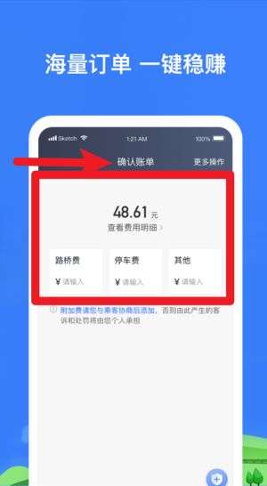 3、订单确认页面可手动填写路桥费、停车费及其他费用,确保账单清晰准确无误。