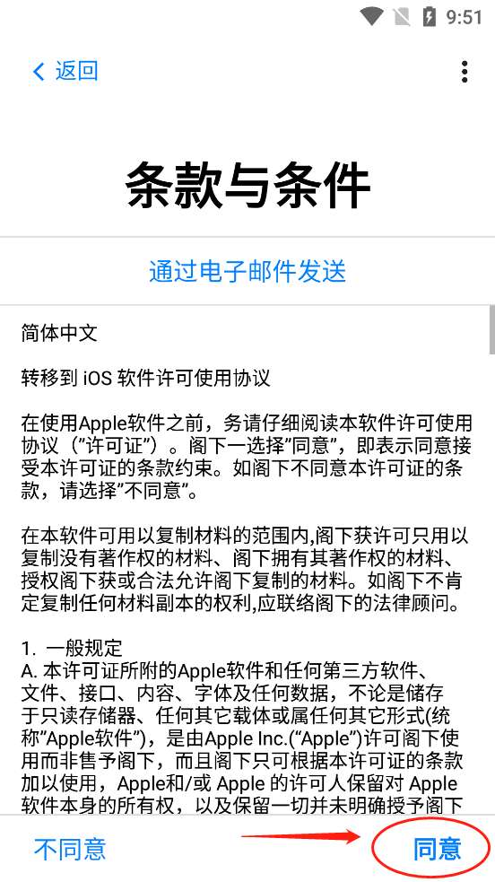 2、仔细阅读【条款与条件】,确认无误后点击【同意】。