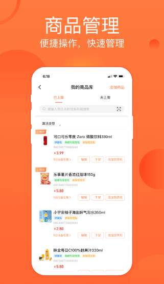 4、具备商品信息管理模块,支持商品陈列、下架、分类及定价等全面操作。