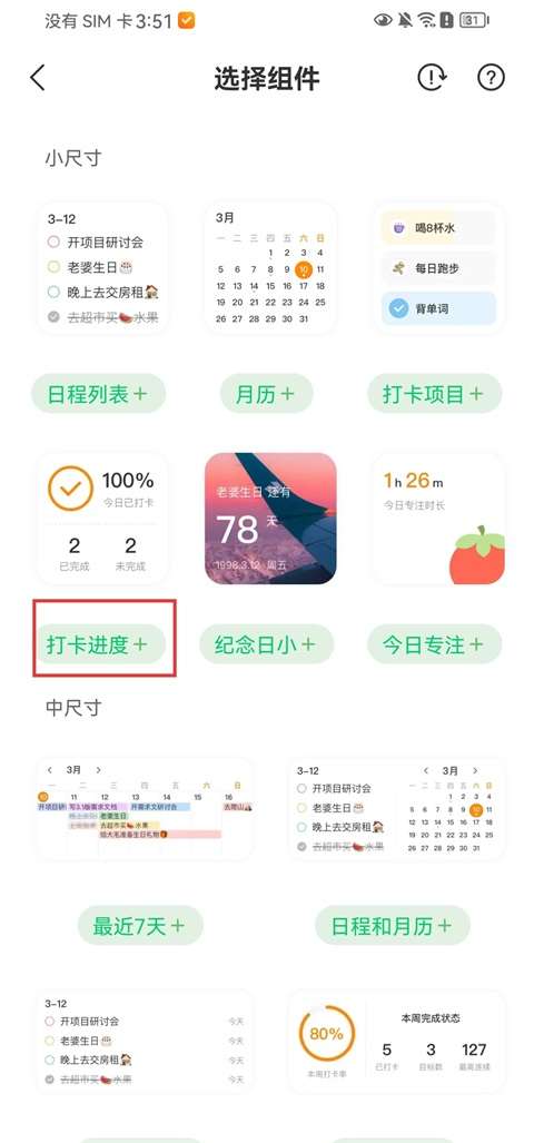 2、在小组件页面,挑选你喜欢的小组件样式,点击下方的【+】图标添加。
