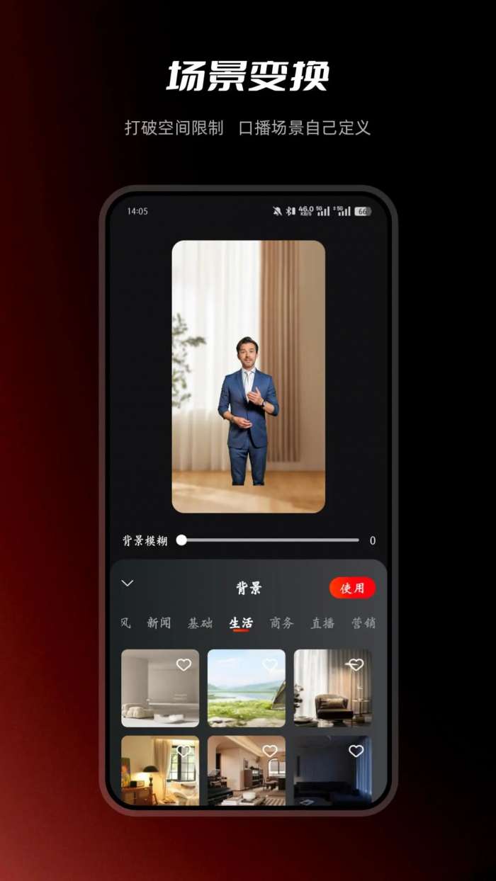 2、场景定制:提供多种背景场景和道具供用户自由选择,增强视频的表现力。