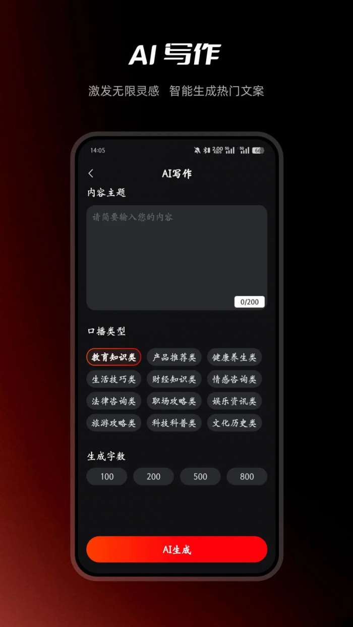 2、AI智能脚本:只需输入关键字,即可快速生成口头文案,创意风格多样,使您的文案更具吸引力。