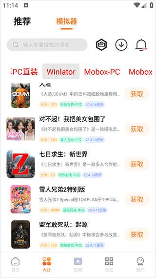 1、只接打开软件用户首先登录,进入大厅界面下选择相关pc模拟器进行点击,例如这里选择winlator。