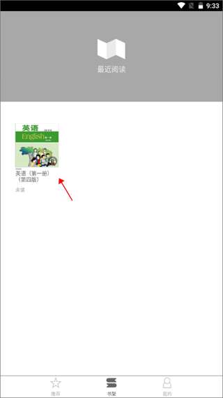 3、添加成功后就可以返回到主页面,然后切换到【书架】界面上去检查是否已经添加成功。