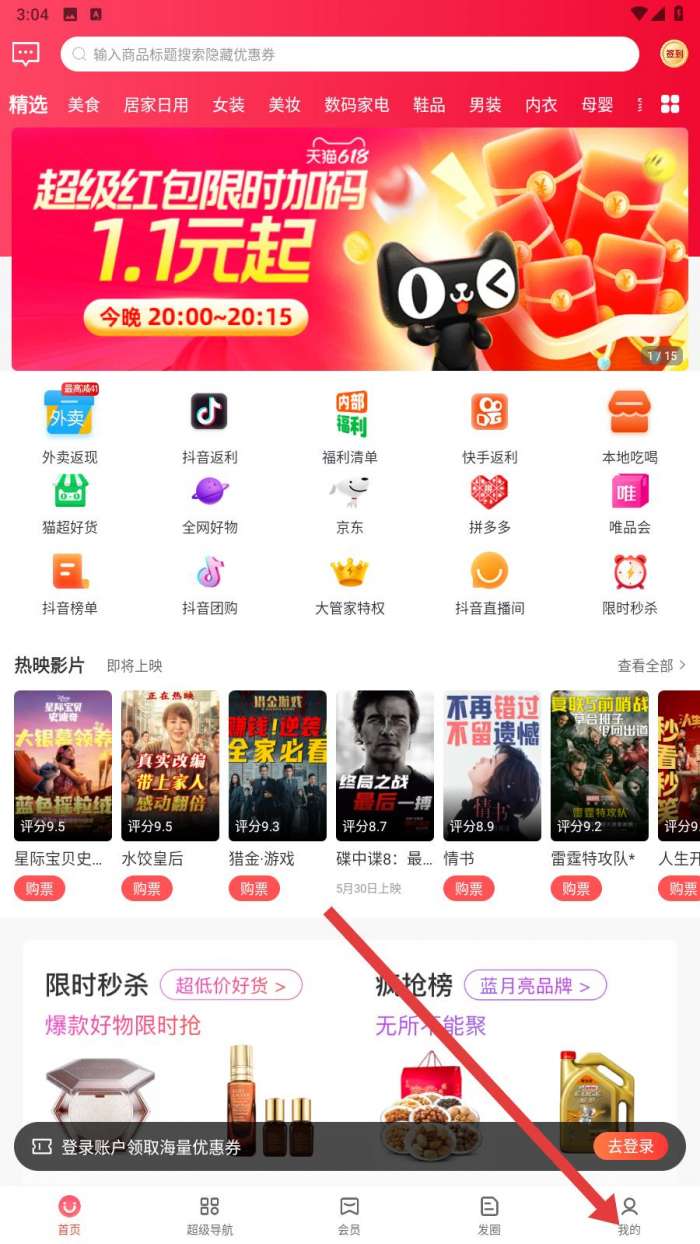 3、进入这个界面后,跟随箭头的指引,将视线移到右下角,点击我的,跳转到下一个界面。