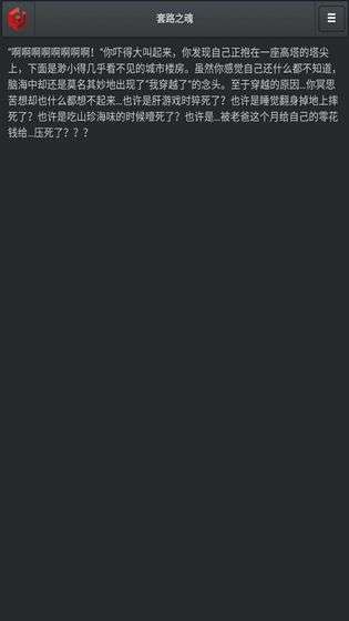 套路之魂游戏安卓版是一款很有意思的冒险剧情类型的游戏,这里的剧情都是用文字的叙述方式,你在这里会有一个不一样的冒险的方式,这款游戏毫无疑问是非常的独特的,你会去到一个很独特的世界里面,然后你要去选择一个你想要的人物在这里去进行冒险,这里的游戏角色还是很多的,在选择角色的这点上还是很自由的,并且在这里你的每一个决定都是非常的重要的,你可以在这里玩的是很开心的。