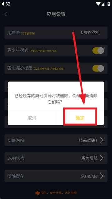 4、点击确定即可清除应用缓存。