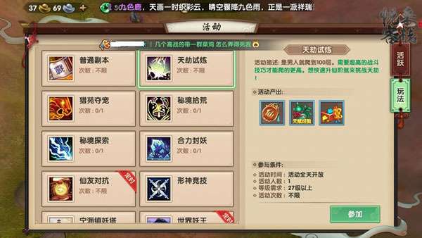 天劫任务需要到指定地图击杀怪物完成任务,建议仙友等级较高时组队完成该任务,任务完成之后自动生成任务星级,满级5星,一定要升星,可以获得更多经验。