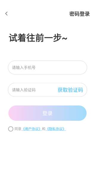 2、同意之后就可以直接跳转到登录的界面,只需要输入手机号和验证码即可。