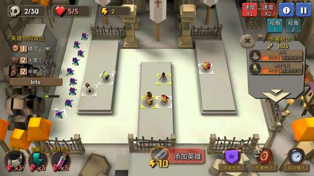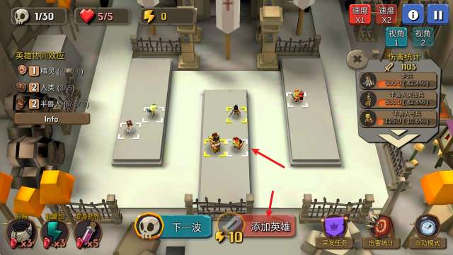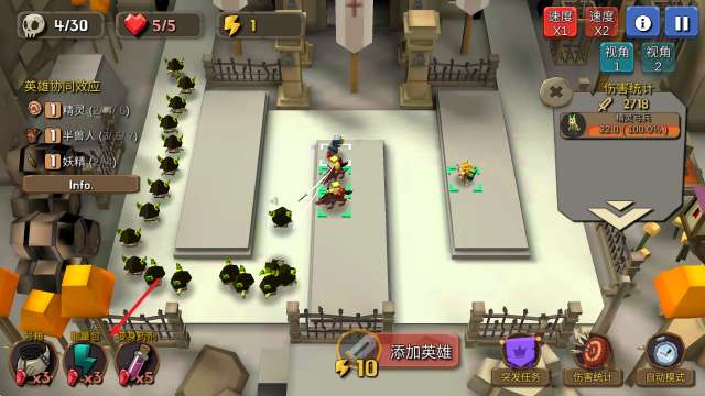 2、相同种类的英雄可以通过合成得到更高级别的英雄,通过消灭敌人获取召唤英雄的能力,如此循环往复,就能打造出更强的防御。