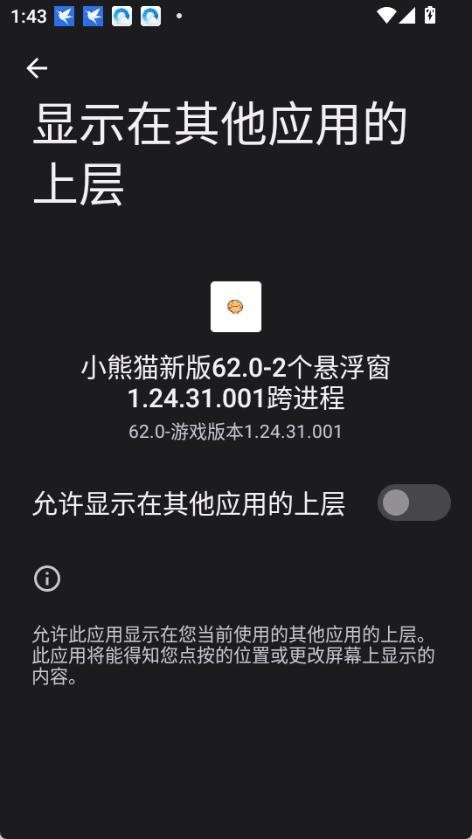 1、小熊猫辅助器安装后按提示授予悬浮窗、无障碍等权限。