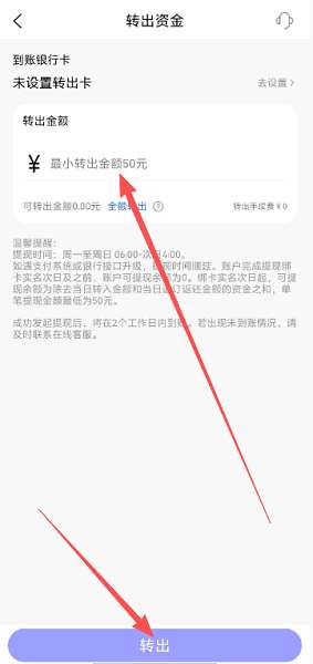 2、之后在转出资金页面中,添加银行卡之后输入需要转出的金额之后点击转出即可成功提现。