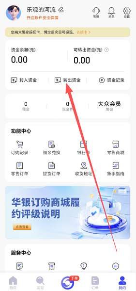 1、用户进入软件之后可以直接在我的页面中点击转出资金即可进行提现服务。