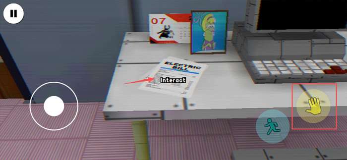 3、接着操控角色来到书桌旁,将视角中间的圆点对准账单后点击手的图标查看电器账单。