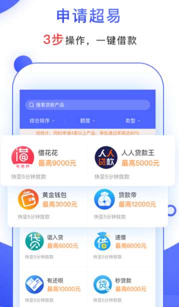 2、【快速借钱】海量贷款产品,快速申请,审核通过当天放款,满足您的借钱需求。