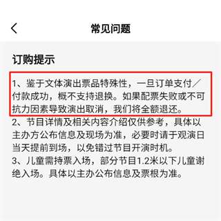 3、如果因不可抗力因素导致门票分配失败或演出取消,软件支持退票和全额退款。