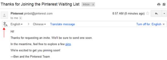 Gmail中所有其它语言的邮件都会有一个“翻译邮件(Translate message)”按钮(下图红色箭头所指)点击就自动翻译。