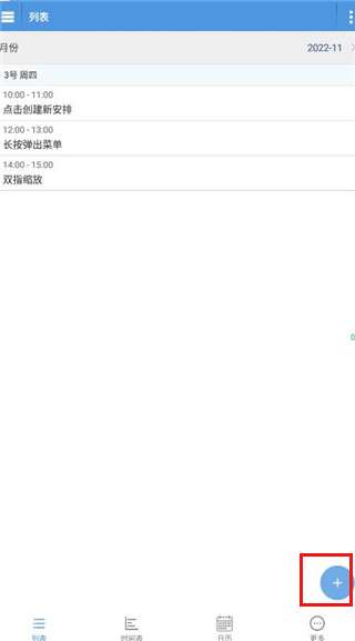 1、进入软件,如图所示,点击右下角的+号创建新日程。