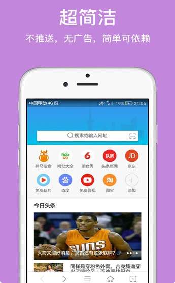 2、【简洁浏览器】超低内存占用,极速轻巧。支持各大主流搜索引擎。只提供每日精选新闻,极简设计风格,没有广告、推送和过度新闻,大大的节省了您的上网流量,节省了手机内存资源,给您一个绿色的浏览器,还您一个简洁的上网环境。