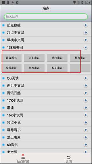 2、可以发现这里有很多图书源网站,用户可以选择自己喜欢的。