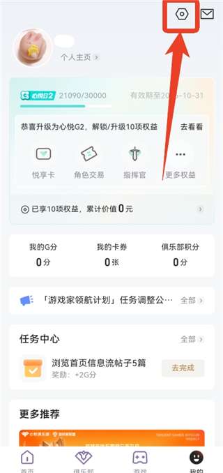 1、登录您的帐户后,转到“我的”页面,单击右上角的齿轮形按钮。