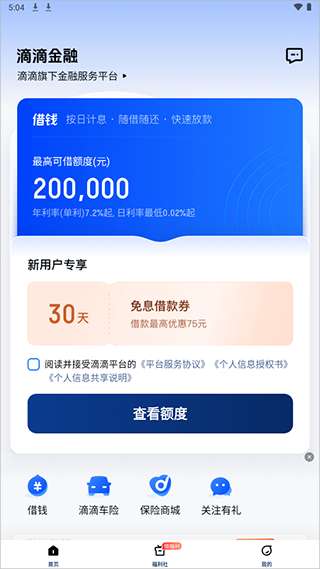 滴滴金融官方版软件是滴滴旗下金融科技品牌,依托于滴滴出行生态圈,探索普惠金融的创新发展道路。滴滴金融为用户提供安全便捷的互联网信贷、保险、支付等服务,致力于打造满足用户全方位金融需求的科技服务平台。感兴趣的朋友不要错过下载滴滴金融官方版软件。