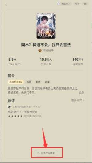 2、在推荐名单上,选择"国术?贫道不会,我只会雷法"作品。