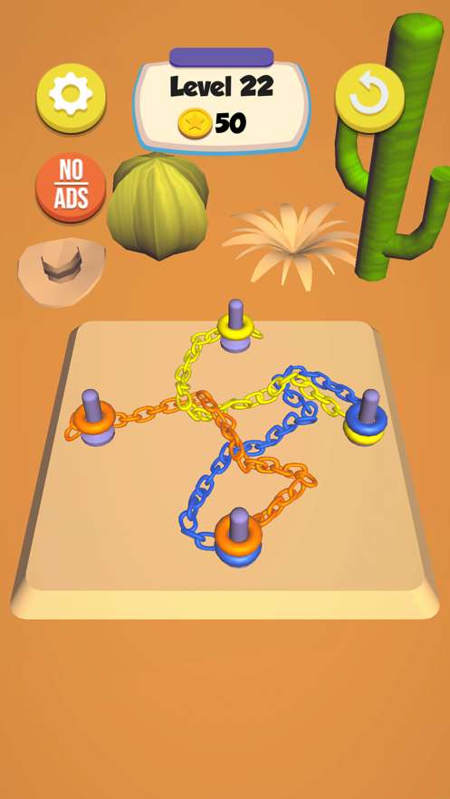 Chain Knots游戏安卓版是一款很考验技巧的游戏,这款游戏中有很多的各种不一样的绳索你要去完美的进行打结,游戏中的玩法是很简单的,很有趣的一款游戏,你要去利用一些技巧然后在这里去进行打结,还有各种不一样的角度你是可以去观察的,很休闲的一款游戏,关卡是很多的,还有各种不一样的任务是你需要去做的。