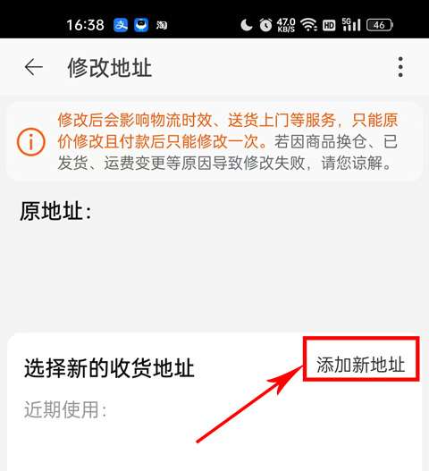 4、然后您将进入地址修改页面,您可以在下面选择添加新地址。