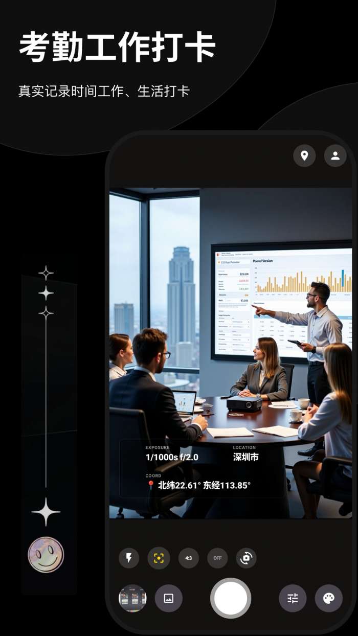 实时显示经纬度、海拔、详细地址,支持工程记录、考勤签到、物业考察等多种专业场景模式,拍摄内容自带权威时空信息,真实可靠防篡改。