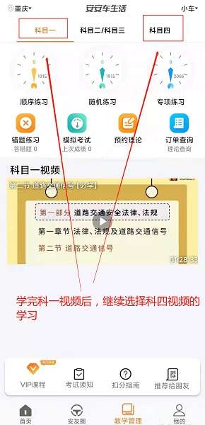 3、认证成功后先选择科目一,再选择在线视频播放,选择后点击开始观看视频,系统自动弹出人脸识别拍照验证,验证通过签到成功后即开始计时学习;签退时点击退出学习自动弹出人脸识别拍照验证,验证通过签退成功(注:科一学满后再学科四,每天最多打4.5小时,我的里面可查看今日学时、科目学习进度情况;科四学时一定要学完才能预约考试)